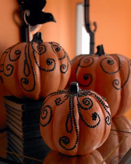 I’m usually a carver, but am thinking I should spread my creative wings and see what I can do. Some of my favorite ideas include white pumpkins and the use of non-traditional fabrics, glitter and beading!