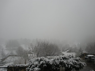 As you can see the visibility at the hotel, looking toward the mountains is not good. Our first night there we attended a jazz concert. The next day we enjoyed a full day at the day spa. I wish I had pictures to share from this, but unfortunately, cameras were not allowed. At one point during the day, E and I were enjoying a nice snowy view of the mountains in the outdoor hot tub when the snow returned and began falling while we were enjoying the warm water. We even had a little fun and braved the ice/snow covered lounge chairs and accepted the challenge of laying on them in our swim suits. It really wasn’t as cold as I thought it would be. It definitely got a lot of laughs and comments from the other hot tub guests. After a relaxing day at the spa we got dressed up and had a delicious dinner at the hotel and enjoyed another great Jazz performance by David Sanborn and John and Bucky Pizzarelli.