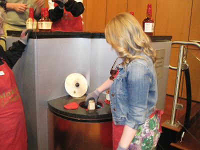 Dipping my bottle. Goggles, apron and gloves are required. A Maker’s Mark employee can dip about 25 bottles a minute. It took me 15-20 seconds for one! |