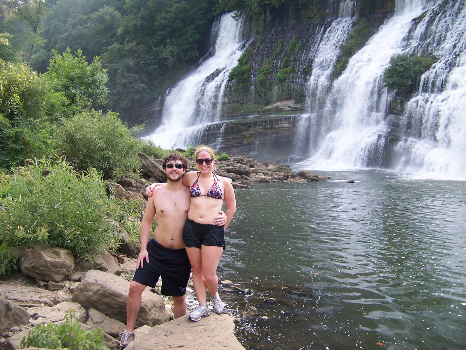 I really hate sitting at home….especially on days where the weather is sent straight from Heaven. A few weeks ago, I had an entire Friday off so E and I ventured to Rock Island, Tennessee. Rock Island is a state park near Cookeville, Tennessee that offers hiking, camping, fishing and just good ole’ fashioned fun. One of the treasures of this park is the waterfalls it offers. The waterfalls are across a small river that you can wade to and play underneath. If you live anywhere close to this area, you have to come visit. There is nothing like having a powerful waterful massage your back.